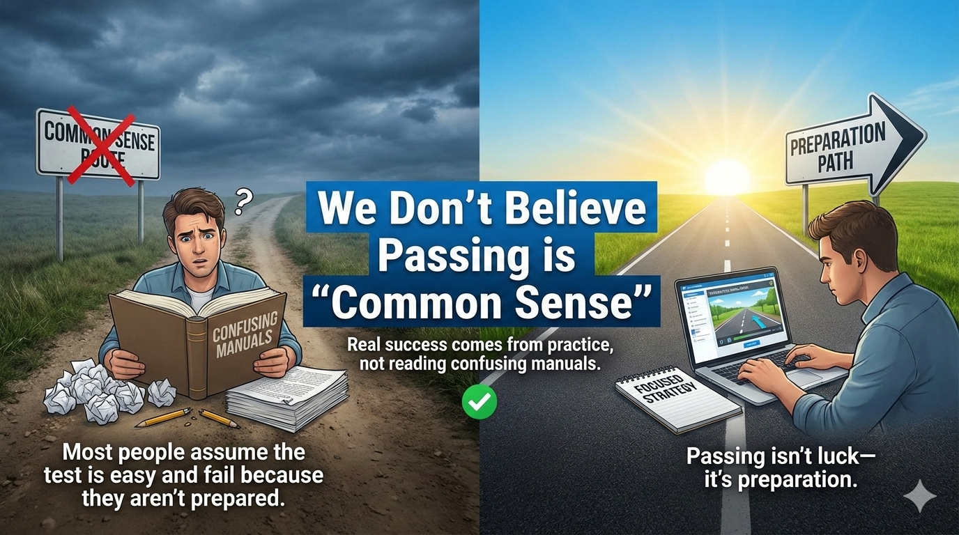 Most people assume the test is easy and fail because they aren't prepared. Passing isn't luck—it's preparation.